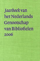 Nederlands Genootschap van Bibliofielen - Jaarboek 2005 I. de la Fontaine Verwey € 30 / 2006 / 15,5 x 21 cm 224 pagina’s / geïllustreerd genaaid gebonden in linnen band opmaak: Chang Chi Lan-Ying ISBN 978 90 76452 86 9 Inhoud: – Holger Nickel mmv Wolfram Kardorf: Boek van het jaar: Konrad Haeblers ‘Typenrepertorium der Wiegendrucke’, 1905. – Wim Gielen: Van den Vos Reynaerde: twee volledige handschriften en drie fragmenten – Werner Waterschoot: Het boek en de man. Karel van Manders ‘Schilder-Boeck’ – John Landwehr: Satirische dwergengrafiek in perspectief. Een eerste verkenning – Piet Buijnsters: Het Nederlandse antiquariaat in perspectief – Ewoud Sanders: De boekloze bibliotheek – Leden schrijven over hun collectie – Leden schrijven over hun ex-libris |